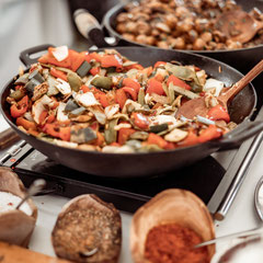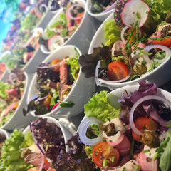 Auch vegetarische und vegane Gerichte, sowie die Berücksichtigung von Unverträglichkeiten, sind nach Rücksprache kein Problem.