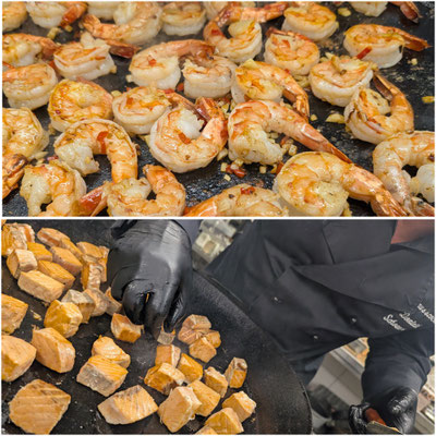 den Tisch serviert wurden.💁🏻♀️🥖🥗🍤🥩